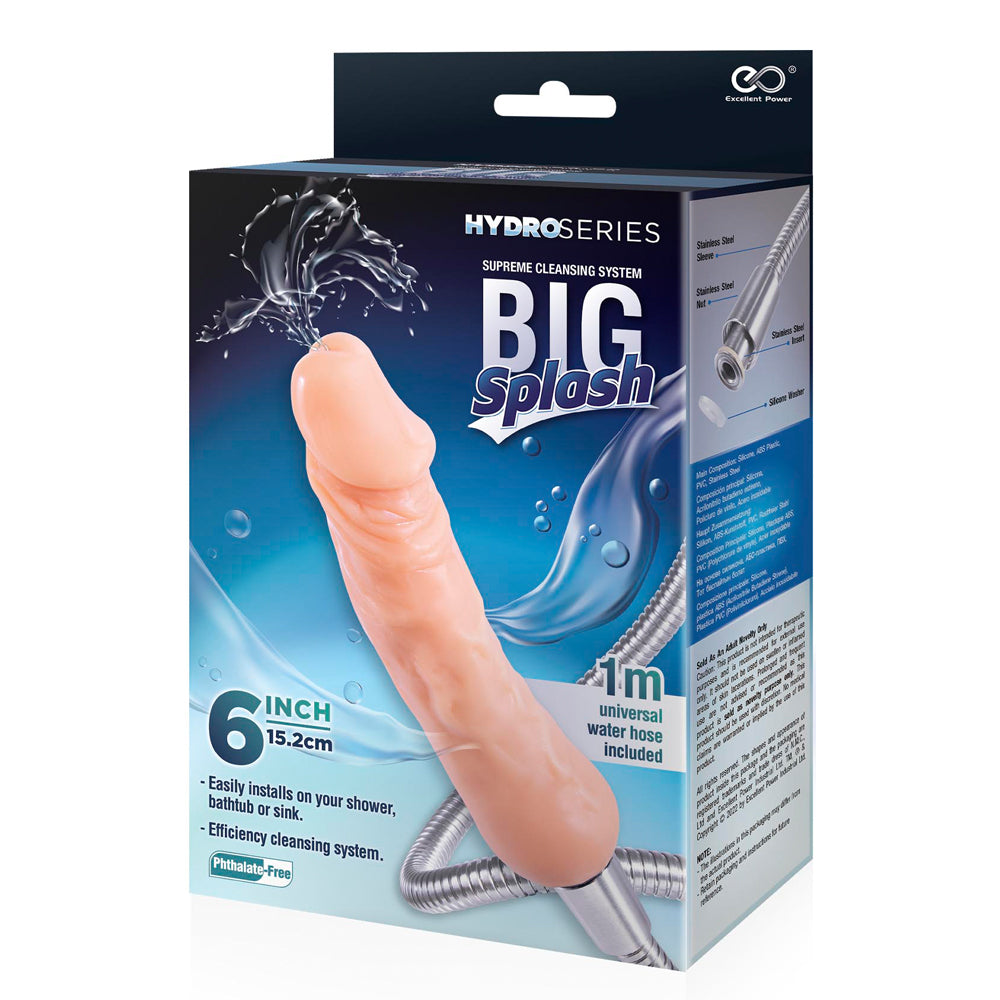 Introducing the Excellent Power Big Splash Shower Douche 6 Inch, the perfect addition to your cleansing routine. This PVC realistic cock-shaped nozzle connects easily to almost any shower, giving you an efficient and stimulating cleaning experience.