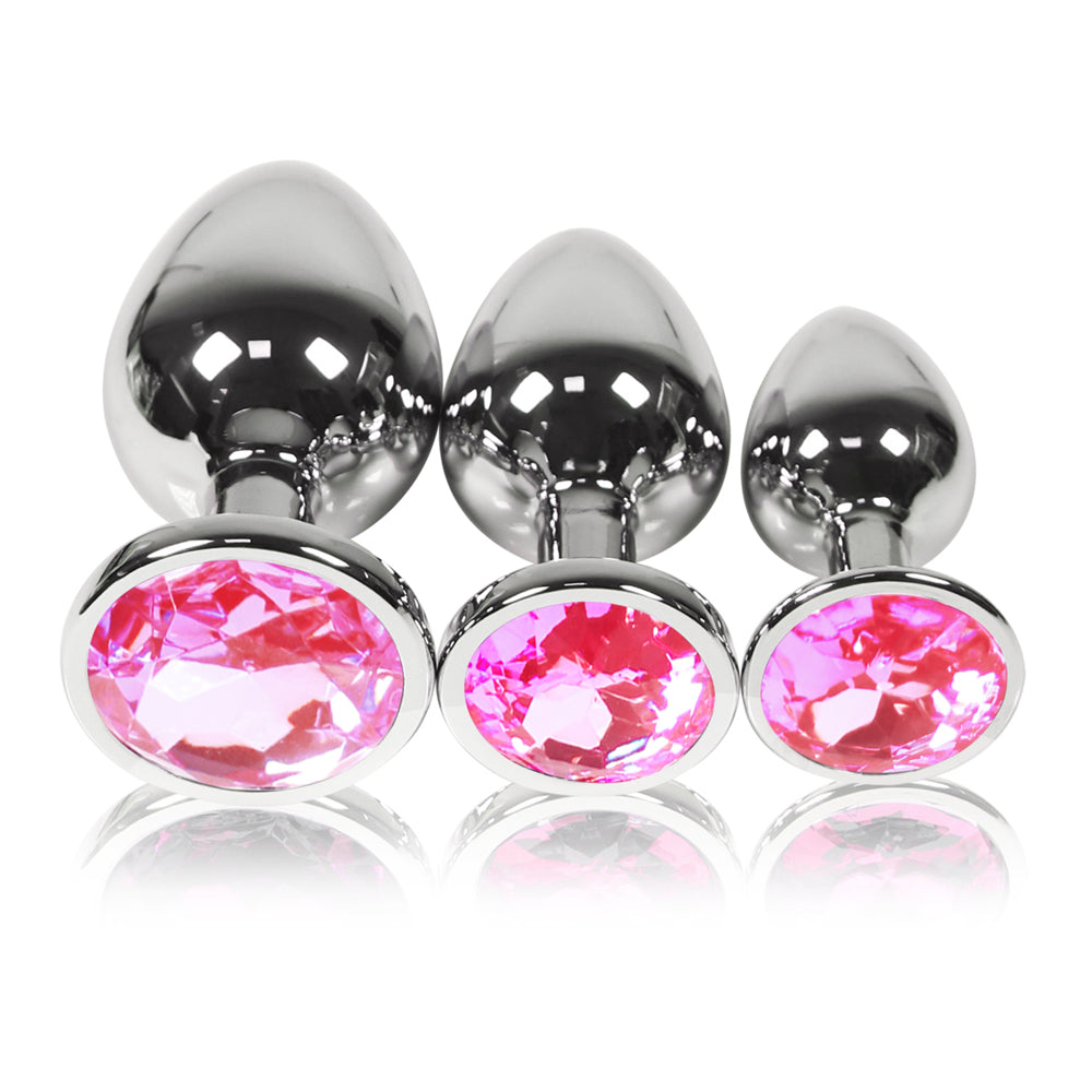 The sleek silver color of the stainless steel contrasts beautifully with the dazzling pink crystal, creating a luxurious and eye-catching look. Each plug is designed for easy insertion and comfortable wear, with a tapered tip and a flared base for safe play.