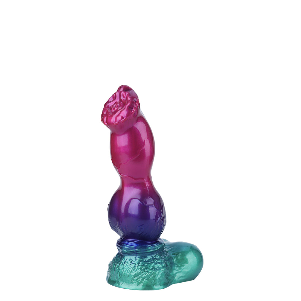 Fantasy Buff Beast Platinum Silicone Dildo 7.1 Inch - Metallic Rainbow