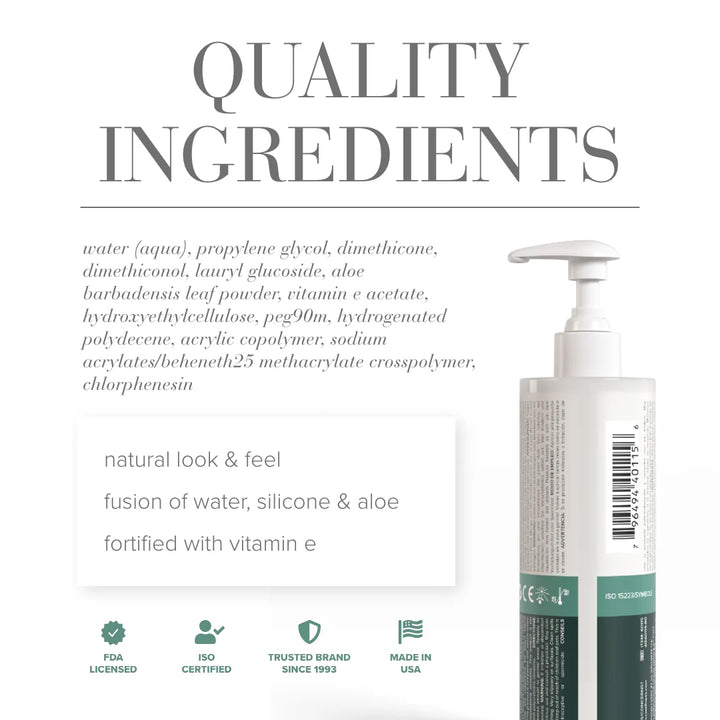 The hybrid formula combines water, silicone, and aloe for a silky smooth glide that is never greasy or oily. It dries to a soft and luxurious finish, leaving you feeling moisturized and comfortable.
