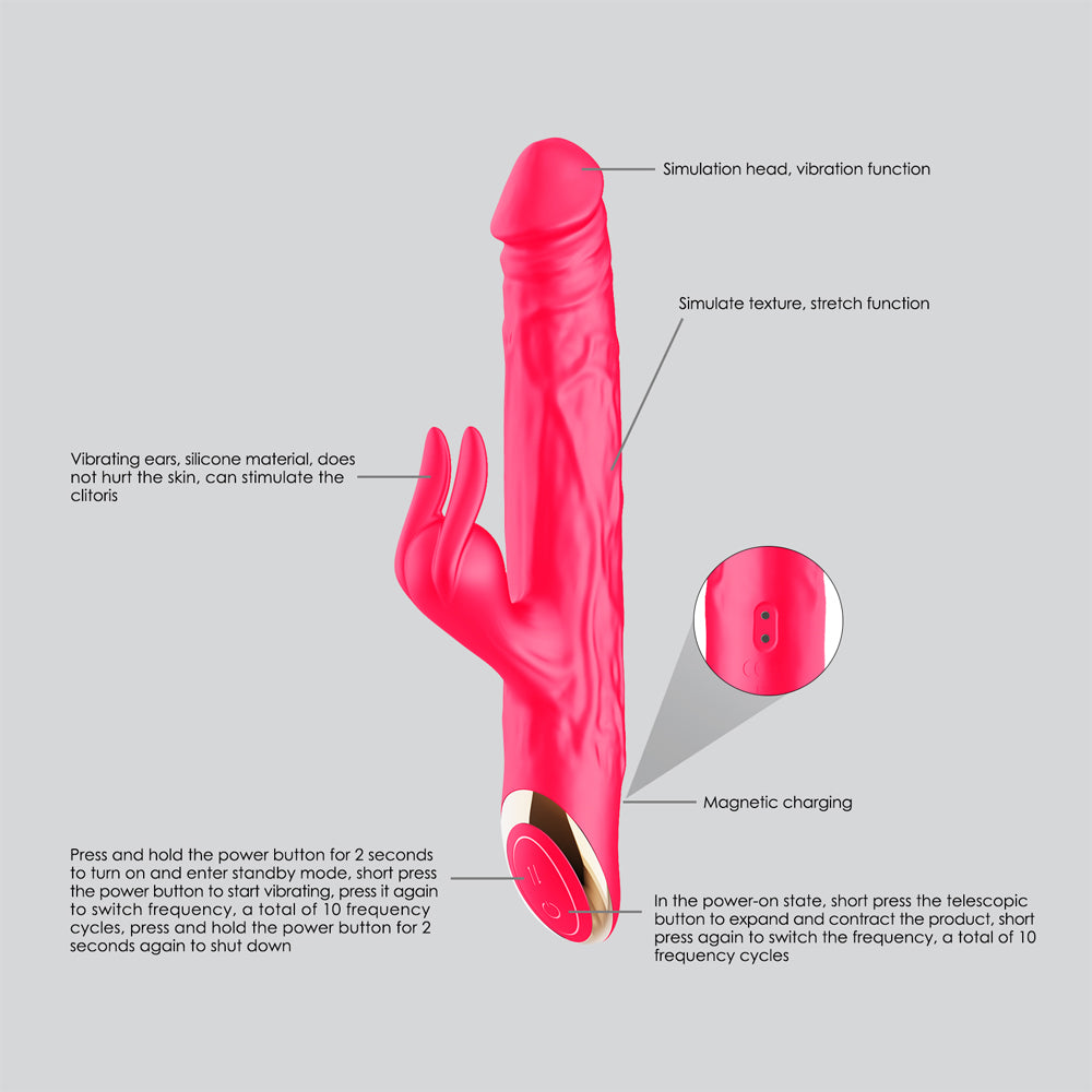 Thrusting Rabbit Dildo Vibrator, SEX TOY |