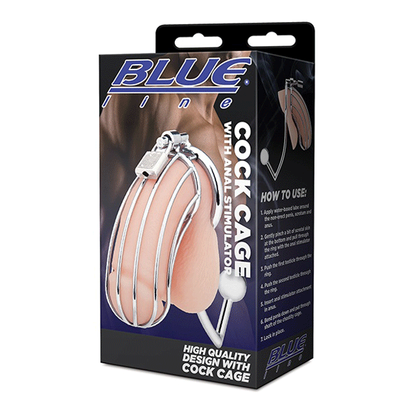 Made from body-safe metal, this toy is both durable and hygienic. It's designed to provide maximum pleasure while keeping your safety and comfort a top priority. So go ahead, liberate your desires and dive into the incredible sensations that the Blue Line Cock Cage With Anal Stimulator has to offer.