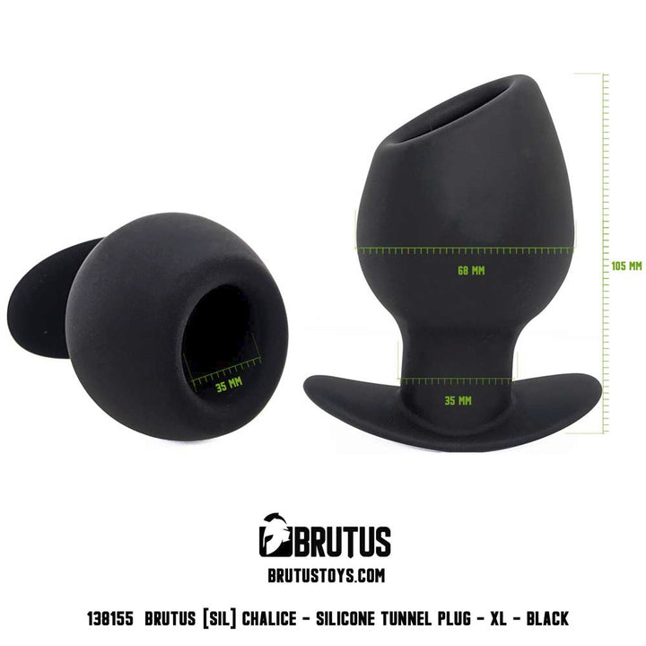 Remember, the Chalice comes in different sizes, ensuring there's a perfect fit for everyone. So, whether you're a seasoned adventurer or a bold beginner, the Brutus Chalice Silicone Tunnel Butt Plug XL is here to deliver unforgettable sensations. Embrace the fun, revel in the stretch, and let this innovative plug take your anal play to new heights. Get ready for endless pleasure, thrilling exploration, and a truly exhilarating ride!