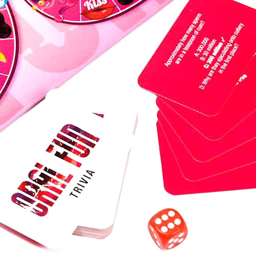 As you make your way around the board, you and your partner will engage in a variety of naughty categories that will ignite your senses. From peach-eating to sword-swallowing, each symbol represents a saucy action or trivia question that will have you giggling and exploring new sensations together.