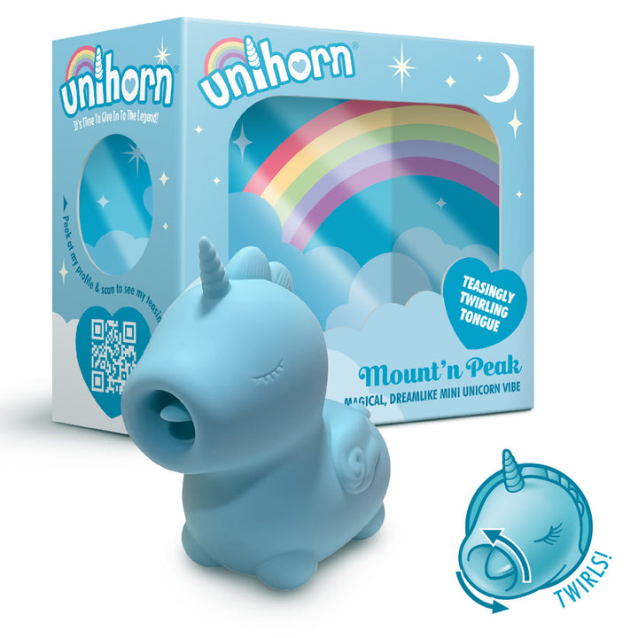 Daringly innovative, Mount’n Peak is equipped with 10 unique tongue motion patterns. But it's not just any tongue, it's pointy, sensuously soft, and sure to tease and tantalize your pleasure points in ways you've never experienced before. This vibrant unicorn steed is all about individuality, giving you the freedom to discover your unique pinnacle of pleasure.