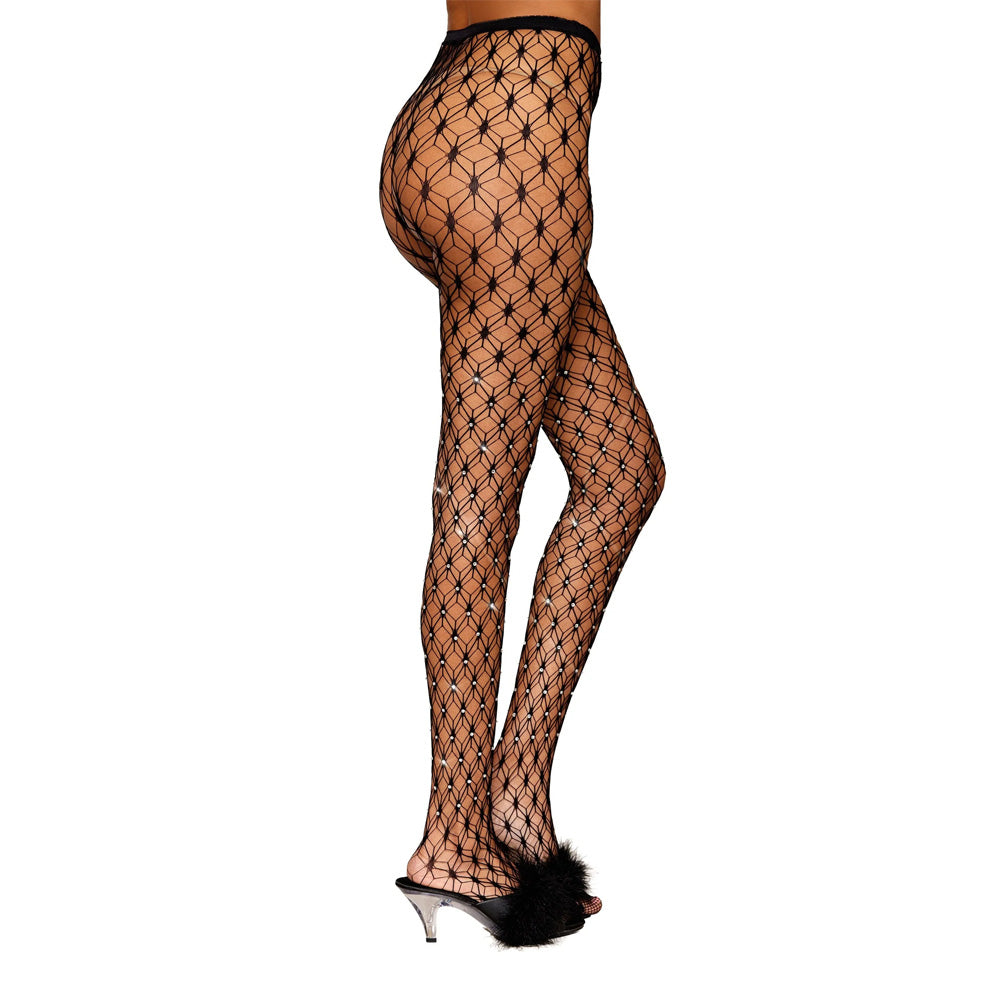 Dreamgirl Geometric Fence Net Pantyhose with Rhinestone Embellishment Black - 0467