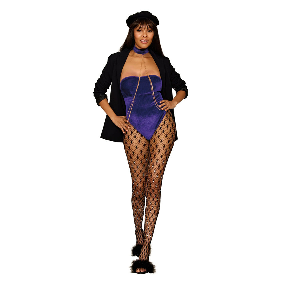Whether you're dressing up for a night out on the town or adding a touch of flair to your everyday wardrobe, these pantyhose are sure to turn heads and make a statement. Pair them with a skirt or dress for a complete look that is chic and sophisticated. Don't forget to add a little sparkle to your step with the Dreamgirl Geometric Fence Net Pantyhose with Rhinestone Embellishment. Thong not included.
