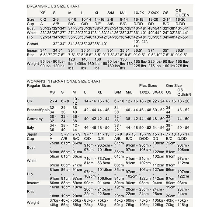 Our Dreamgirl Lingerie Garter Slip Ruby is available in a convenient one size fits most option, ensuring a flattering fit for a variety of body types. For precise measurements and the ideal fit, please refer to our comprehensive size chart.