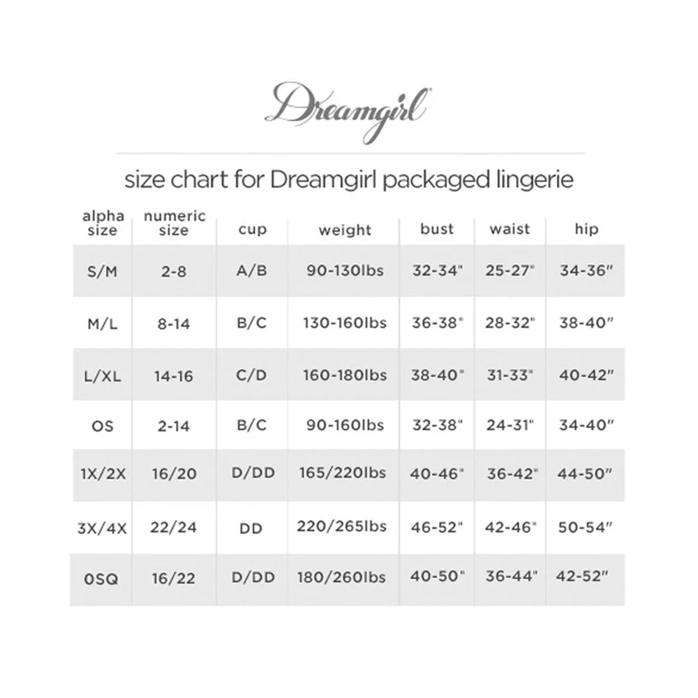 Dreamgirl Lingerie Teddy Bodystocking Black 0355X is designed to fit most body types, ensuring a comfortable and flattering fit. For accurate measurements and a flawless silhouette, please refer to the size chart provided.
