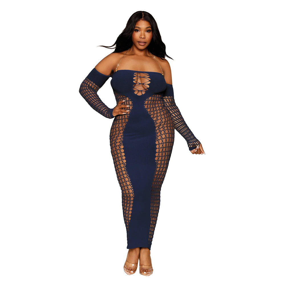 Dreamgirl Plus Size Bodystocking Gown Gold Halter Chain 0486X - Denim
