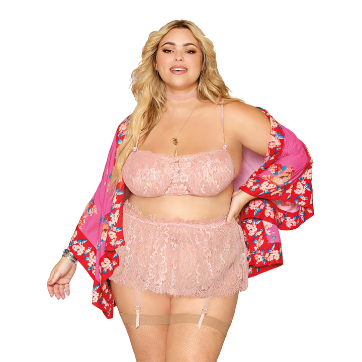 Dreamgirl Plus Size Lace Bralette Garter Skirt Choker Set 13279X - Rose