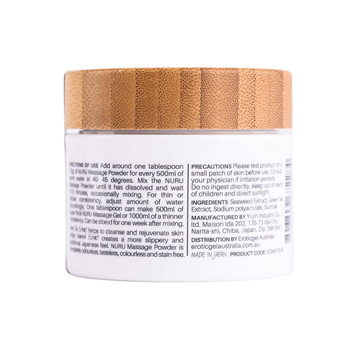 Introducing Eroticgel Australia's Nuru Massage Gel Powder 40g, your go-to solution for a genuine Nuru massage experience. Infused with Seaweed Extract and Green Tea Extract, our powder is meticulously curated not only to escalate your sensory pleasure but also to provide outstanding skincare benefits. Perfectly suited for sensitive skin, the ingredients in our gel powder will invigorate your skin while adding an authentic touch to your Nuru massage.
