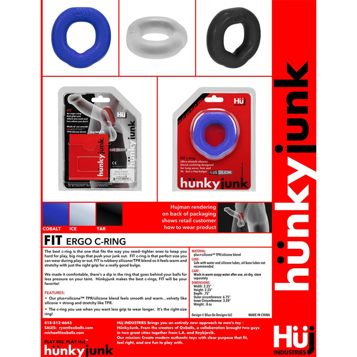HunkyJunk Fit Ergo Longwear Cock Ring - Tar