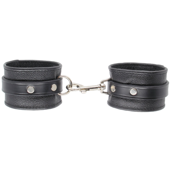 With a mini snap and dee ring join, these ankle cuffs offer versatility in how you choose to wear them. Connect your favorite chain for an added layer of excitement, or attach them to a spreader bar to explore new boundaries. There's no limit to the possibilities when it comes to your pleasure.