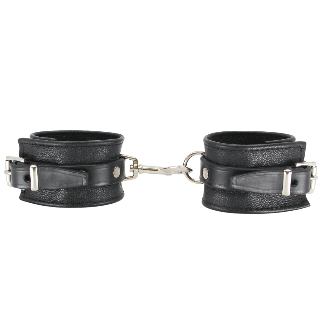 Immerse yourself in the luxurious feel of the super soft grained leather cuff, designed to provide ultimate comfort during your intimate moments. The contrasting flat leather strapping adds a touch of elegance and style to these cuffs, making them a truly eye-catching accessory.