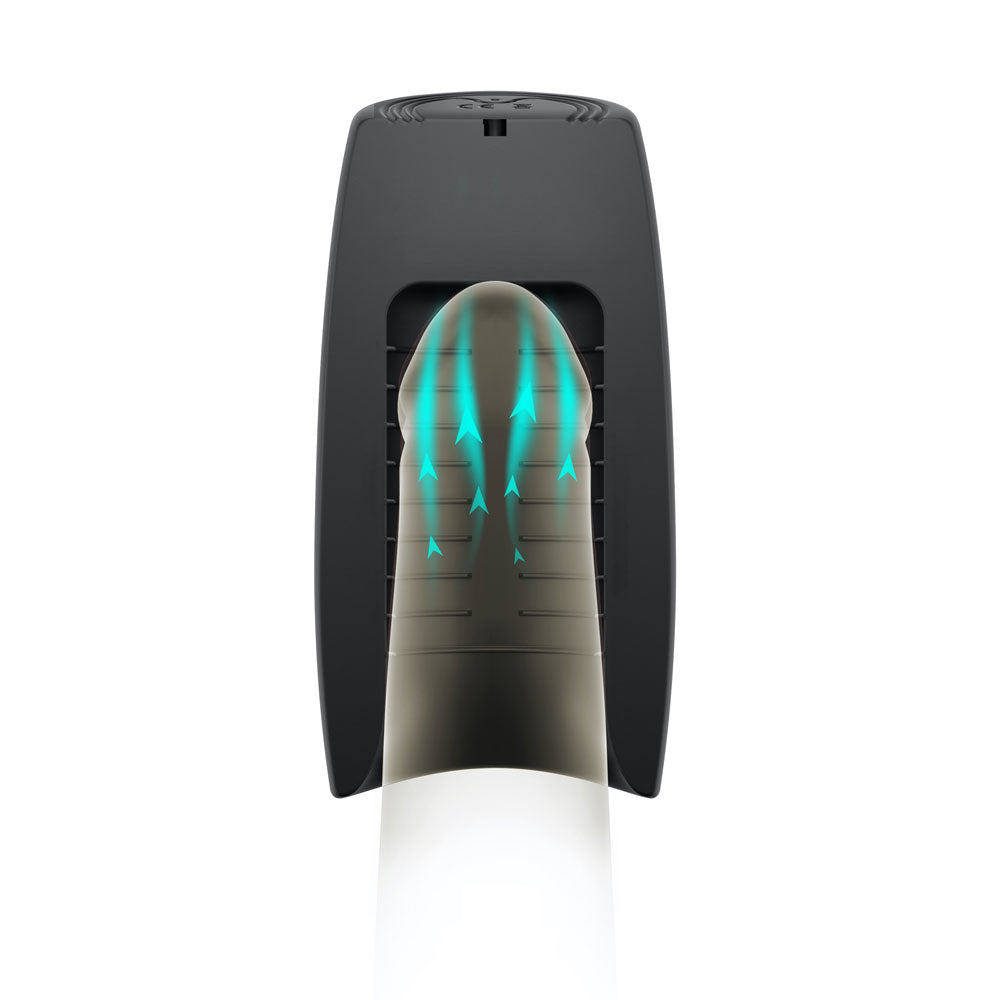 The inner texture is specifically designed to maximize sensation and add to the overall stimulation, making every use uniquely satisfying. The entire unit features an ergonomic handgrip that offers a secure and comfortable hold, facilitating effortless control and maneuverability during use. One standout feature of the Man.Wan Pump One is its warming function, designed to simulate body temperature for a more natural and inviting experience.