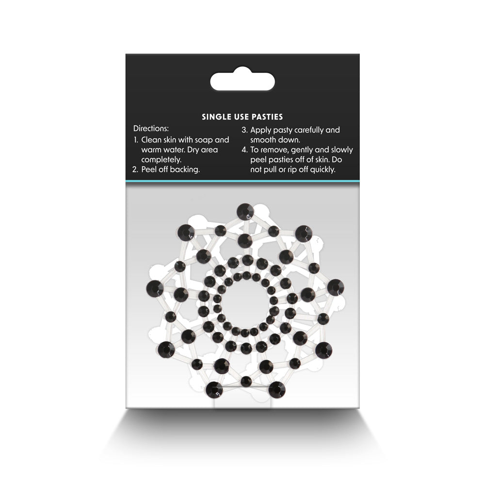 Unleash your inner temptress with the NS Novelties Pretty Pasties Charm III in the timeless shade of black. This delightful collection of adhesive nipple covers brings both mystery and magnetism, weaving an enchanting story that's meant to be explored.