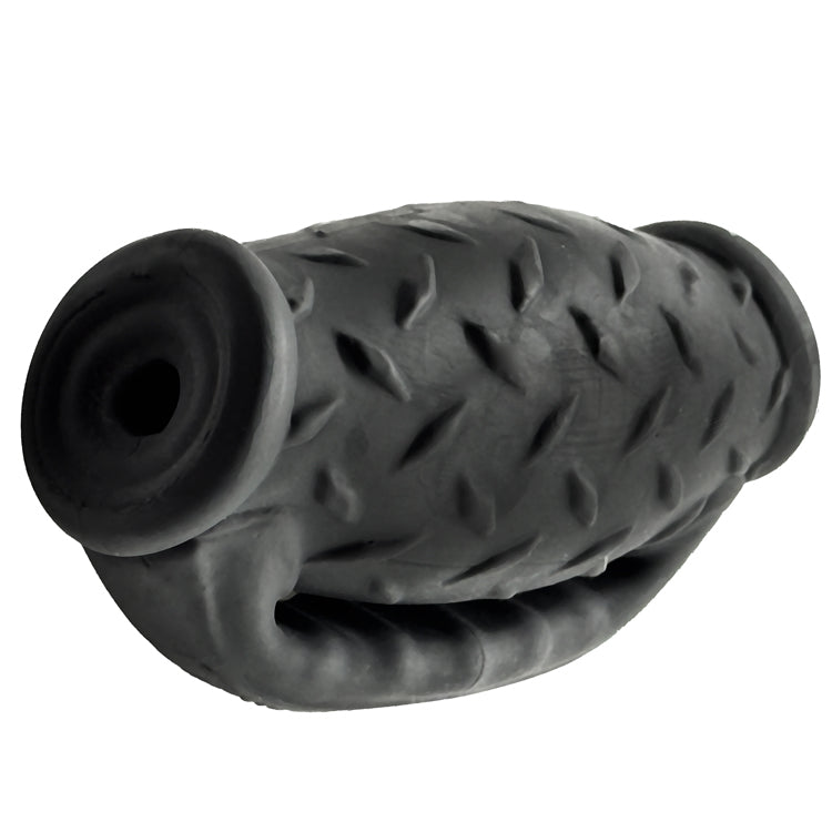 The MASTERJACK features a diamond plate grip surface, ensuring that no matter how greasy, sloppy, or wet you get, it will stay securely in your fist. Made from the extra-soft Plus+SILICONE, this stroker feels fleshy warm and incredibly satisfying to the touch.