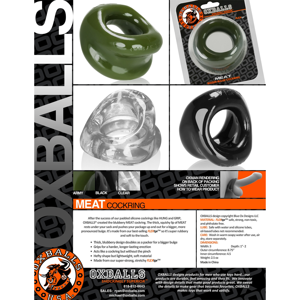 So why settle for anything less when you can have the best? Indulge in the pleasure and power of the Oxballs Meat Cockring - Black. Get ready to showcase your bulge like never before with this top-of-the-line accessory. Own it, wear it, and let the world know you mean business.