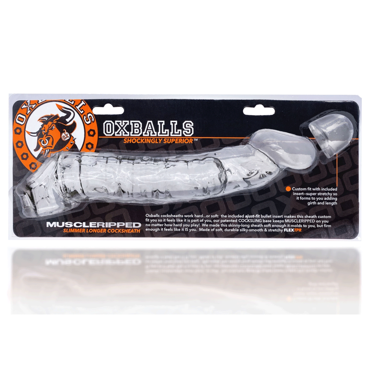 Introducing the Oxballs Muscle Ripped Cock Sheath - Clear, a slimmer and leaner version of our best-selling sheath, the MUSCLE. Designed to add a little more girth and inches of length, this sheath is the perfect size - not too big, not too small.