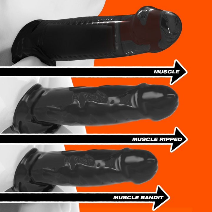 With its slim design, the Muscle Ripped sheath offers a little more girth and an impressive 2.5 inches of additional length. It's similar to our popular Muscle sheath, but with a size that fits even more people. You'll love the stretchy and rubbery feel of the FLEXtpr™ material, which molds perfectly to your shape.