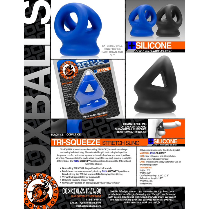 Introducing the Oxballs Tri Squeeze Cock Sling - Black, the ultimate combination of comfort, style, and functionality. This innovative sling takes our best-selling TRI-SPORT design and adds a new twist with bulge enhancing ball-stretching.