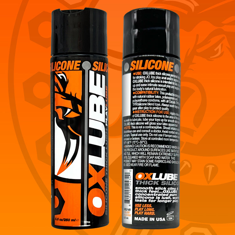 Made in FDA rated facilities in the USA, Oxlube Thick Silicone is a 100% condom compatible and sex toy safe lube. It can be used with all materials, including Oxballs Liquid Platinum Silicone toys, flexTPR, latex, glass, and metal.