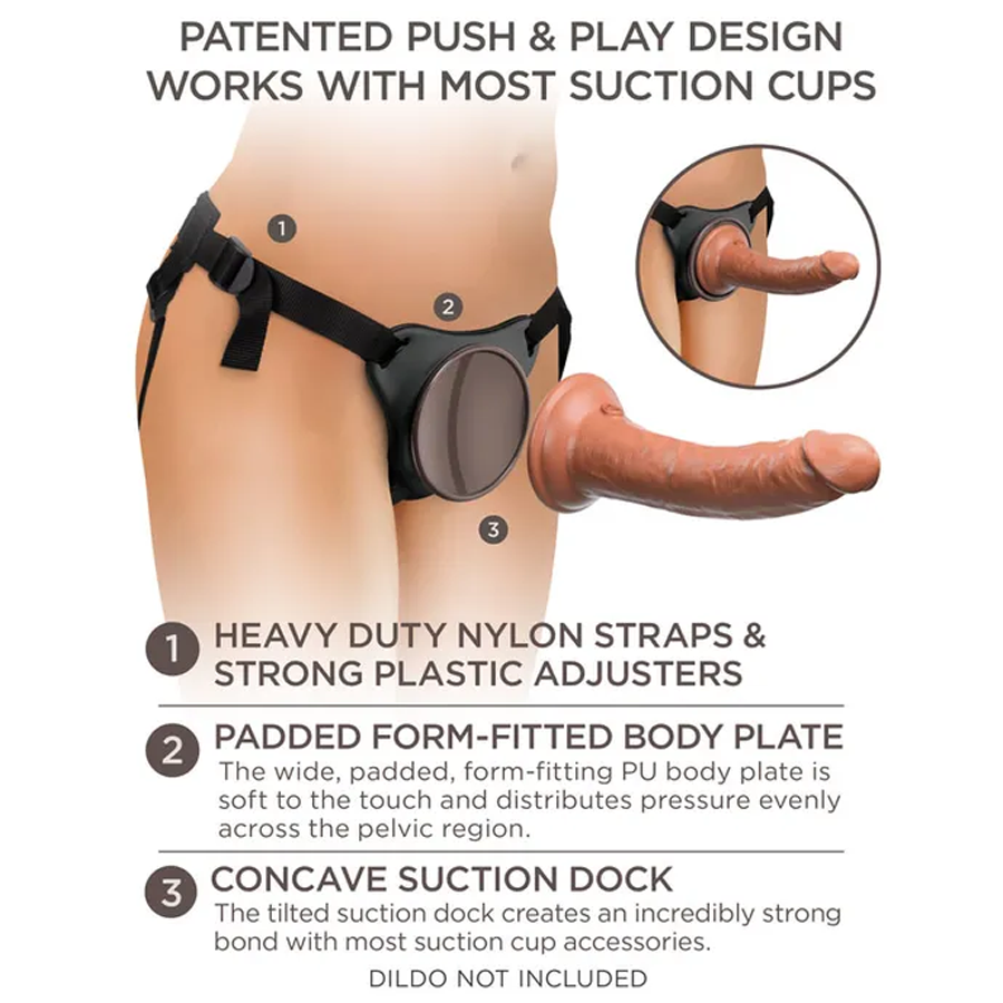 Take your strap-on play to new heights with the Pipedream King Cock Elite Comfy Body Dock Strap-On Harness. Enhance your pleasure, enjoy the convenience, and embrace the comfort. Get ready to embark on a strap-on adventure like no other!