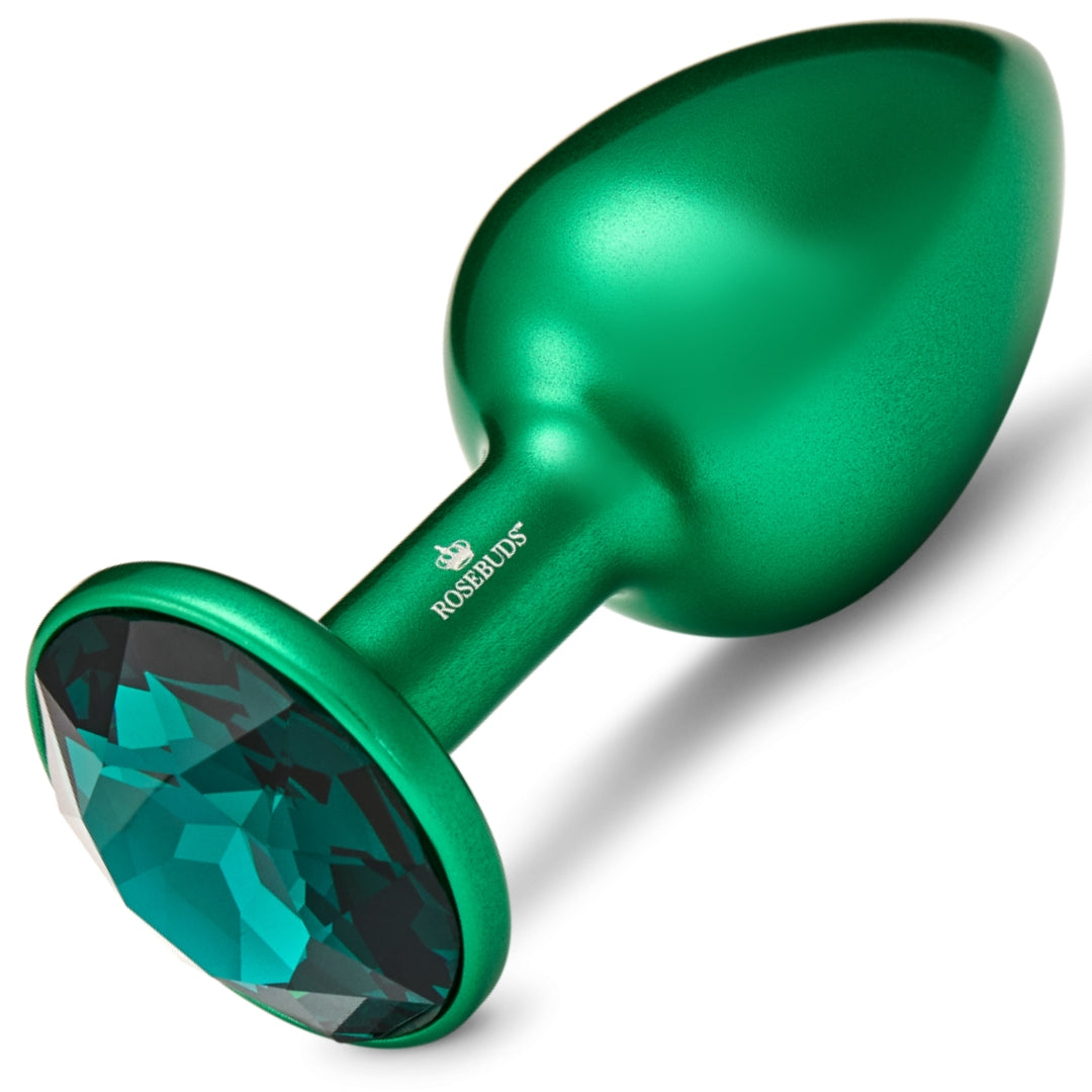 In addition to its practical benefits, the Rosebuds Aluminium Butt Plug is also a stylish accessory. Made in Europe with premium quality crystal, this anal plug jewelry is perfect for adding a touch of luxury to your intimate moments. The green medium size is perfectly proportioned for sensual anal play, enhancing both your natural beauty and your partner's excitement.