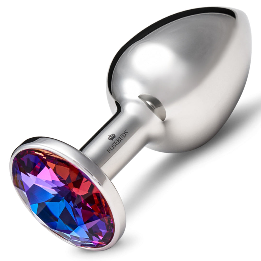 Introducing the Rosebuds Stainless Steel Butt Plug Medium in a stunning Violet Blue color. This classic Rosebud is a must-have sensation jewel for both women and men, providing intense pleasure with its perfect size and weight.