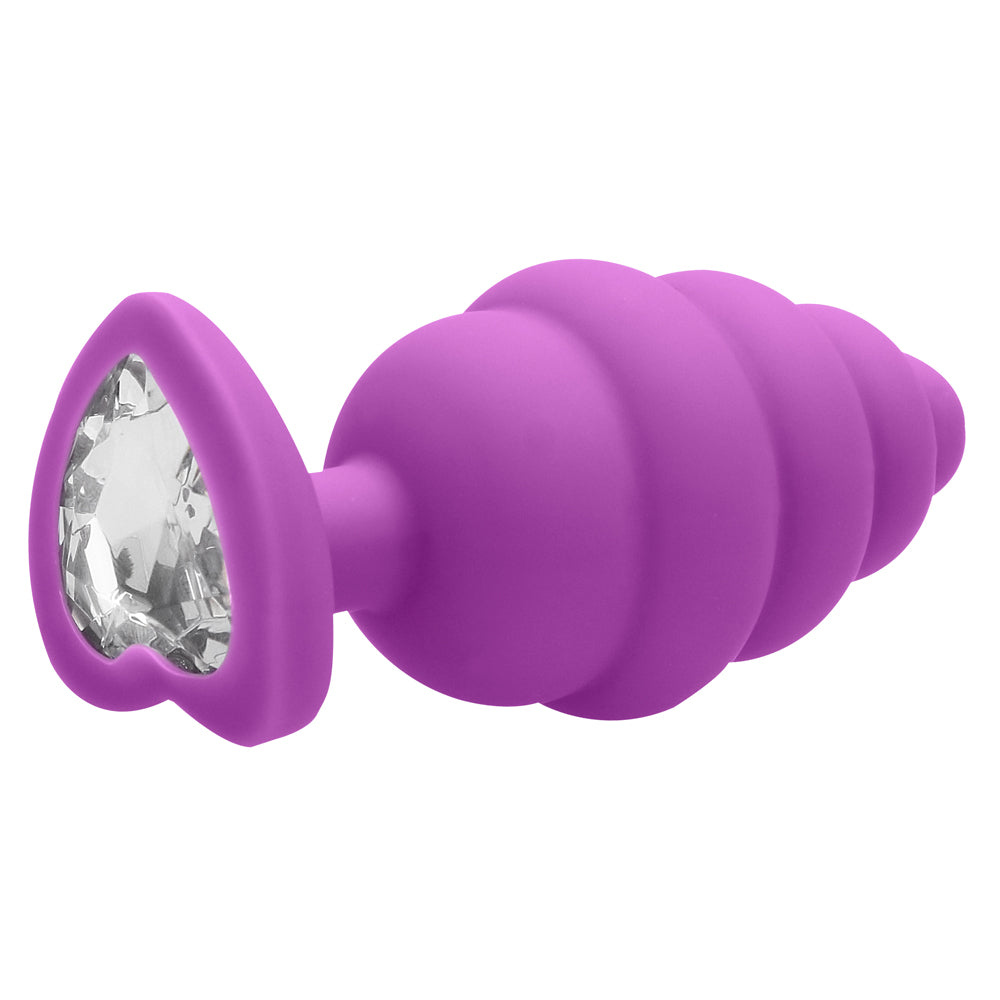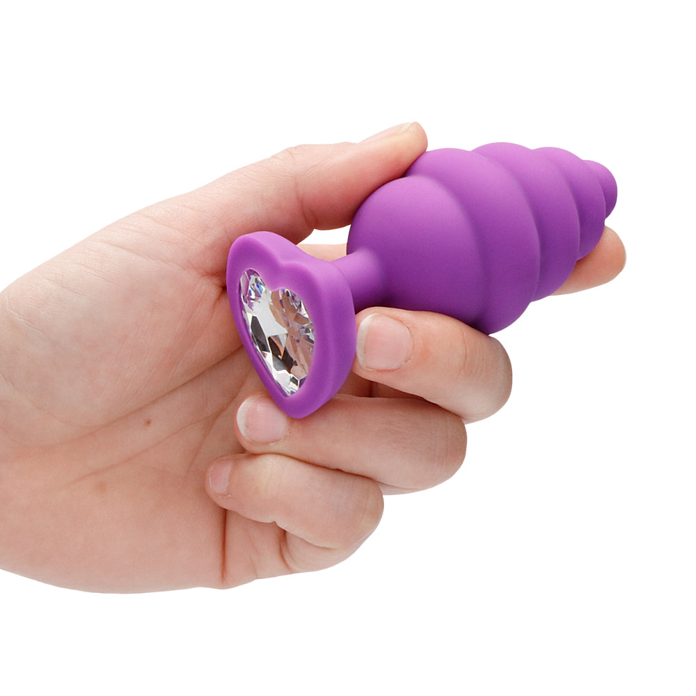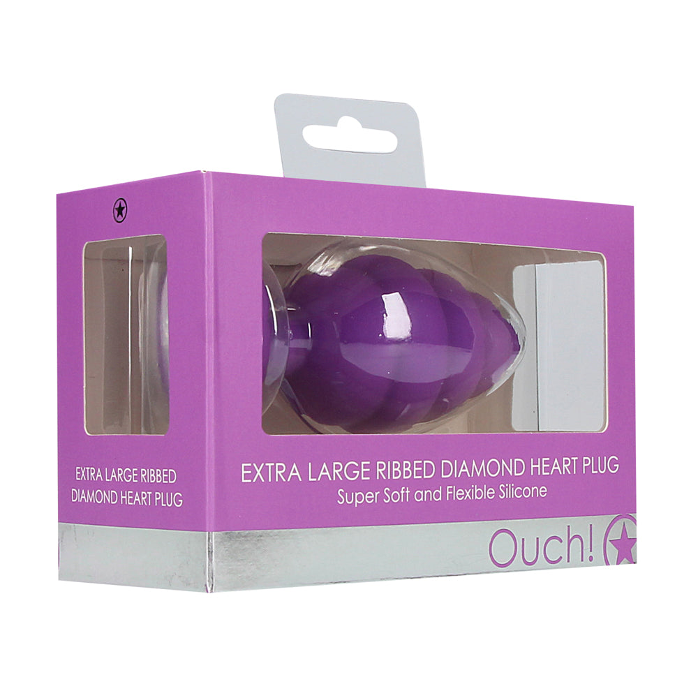 Shots Ouch Ribbed Diamond Heart Plug Extra Large - Purple