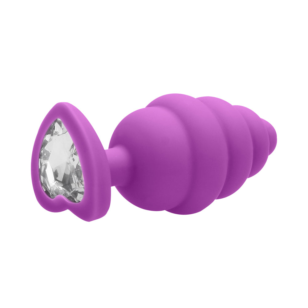 Shots Ouch Ribbed Diamond Heart Plug Large - Purple