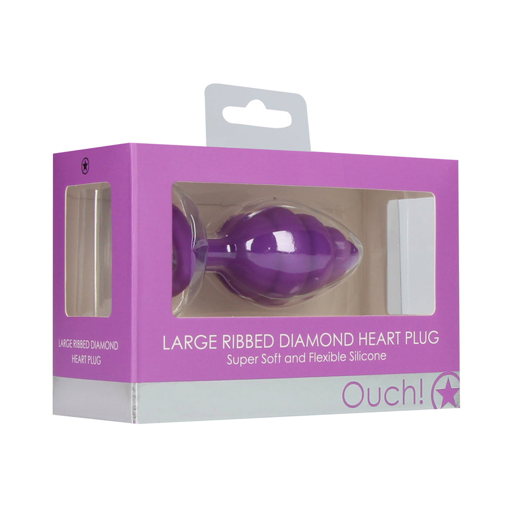 So why wait? Add a touch of luxury to your playtime with the Shots Ouch Ribbed Diamond Heart Plug Large in purple. Whether you're using it solo or with a partner, this butt plug is sure to bring a new level of excitement and pleasure to your bedroom adventures. Order yours today and experience the ultimate in intimate indulgence!