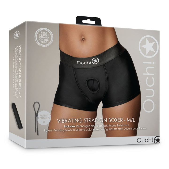 Shots Ouch! Vibrating Strap On Boxer - Black