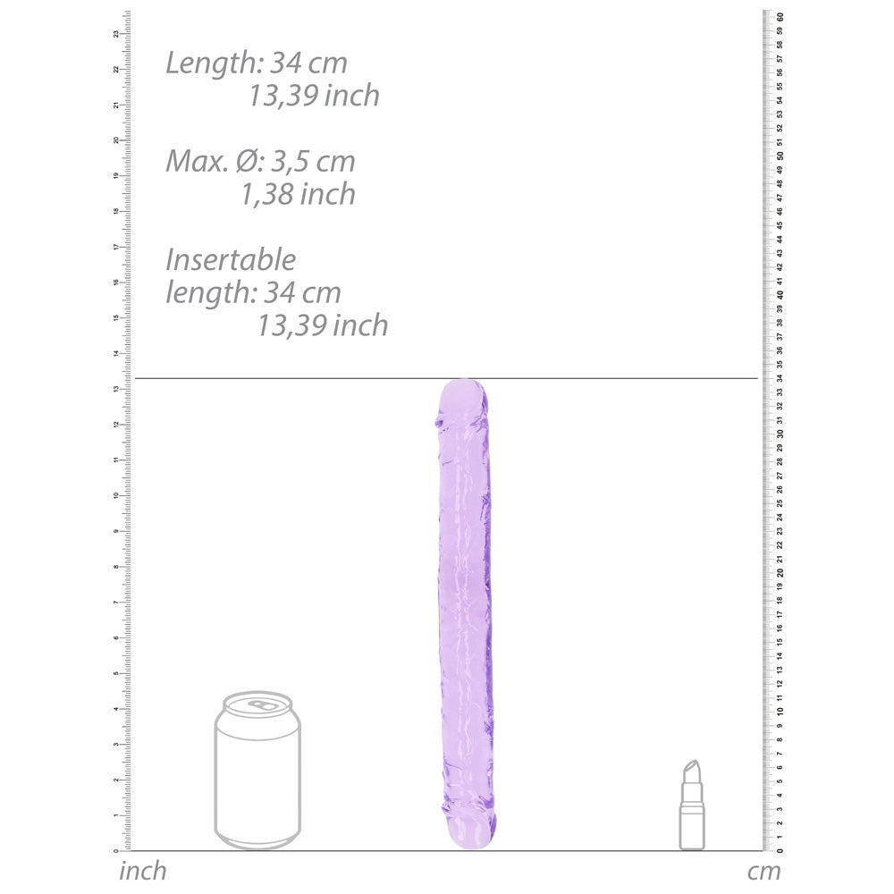 Experience the ultimate pleasure with the Shots Real Rock Crystal Clear 13 Inch Double Dildo in Purple. This exquisite double dildo is designed to bring you to new heights of ecstasy with its crystal-clear, phthalate-free TPE material that is safe for your body.