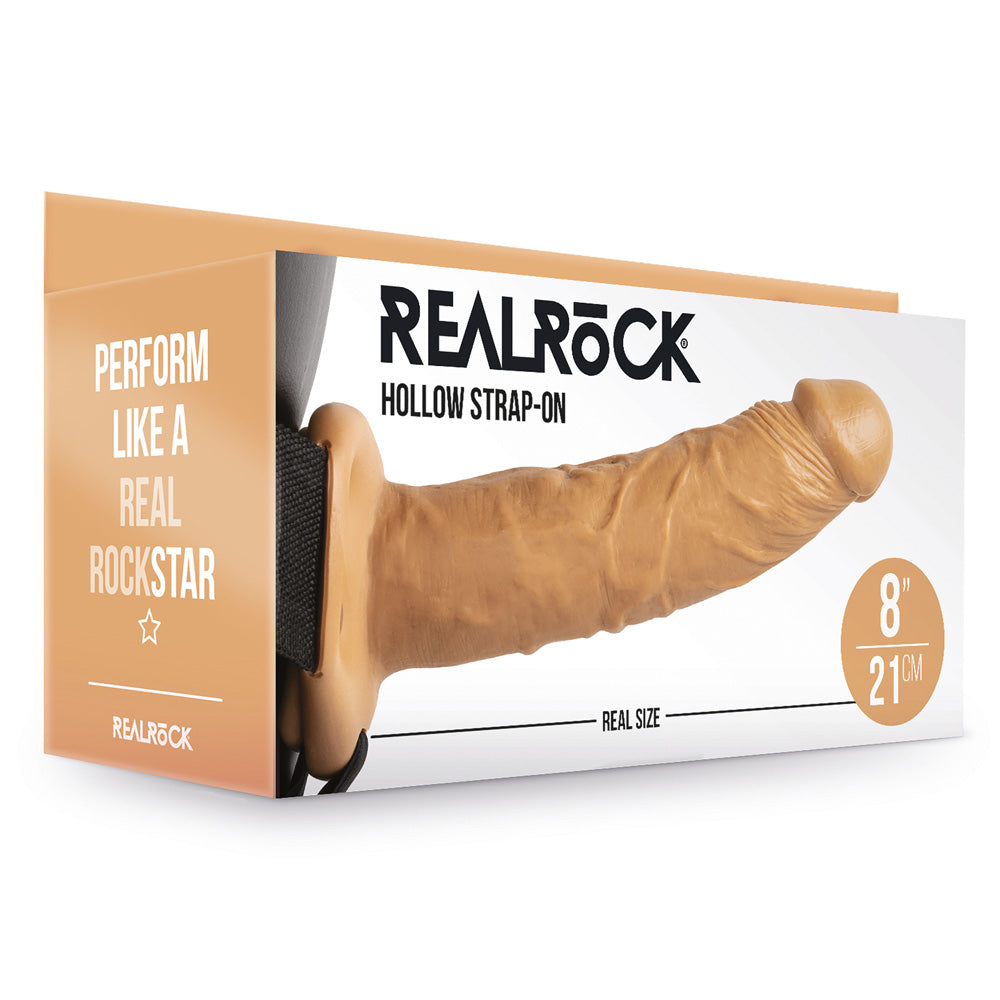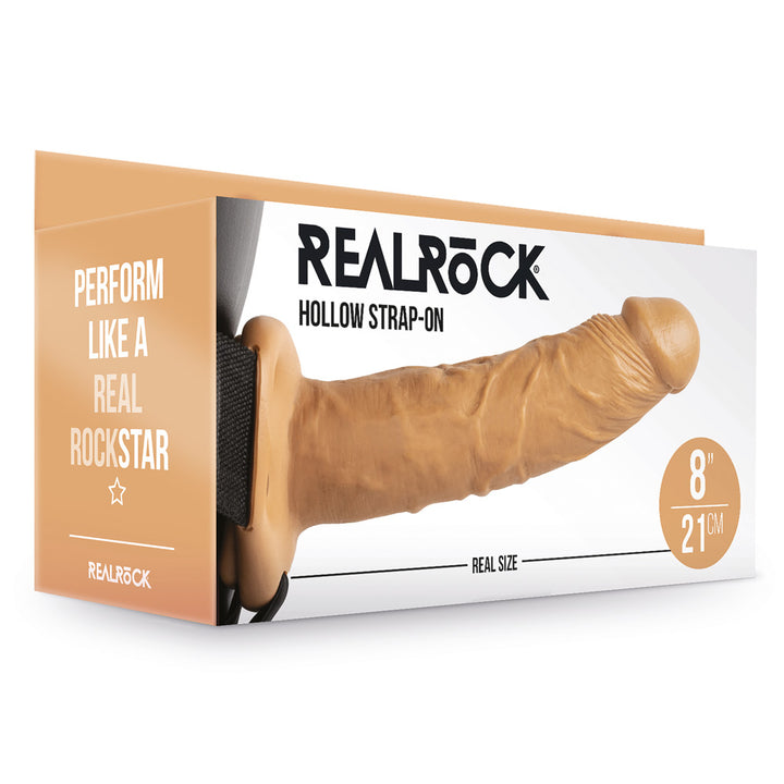 Shots Real Rock Hollow Strap On 8 Inch - Tan