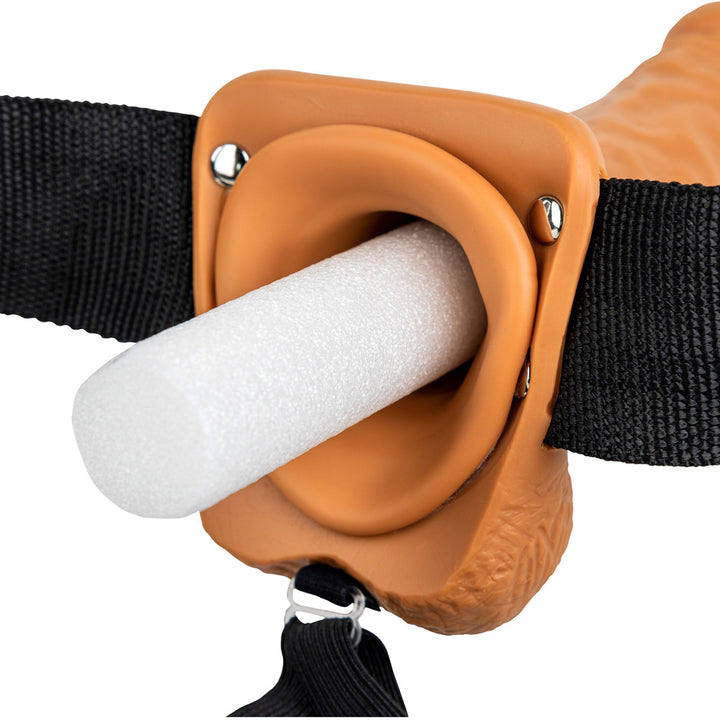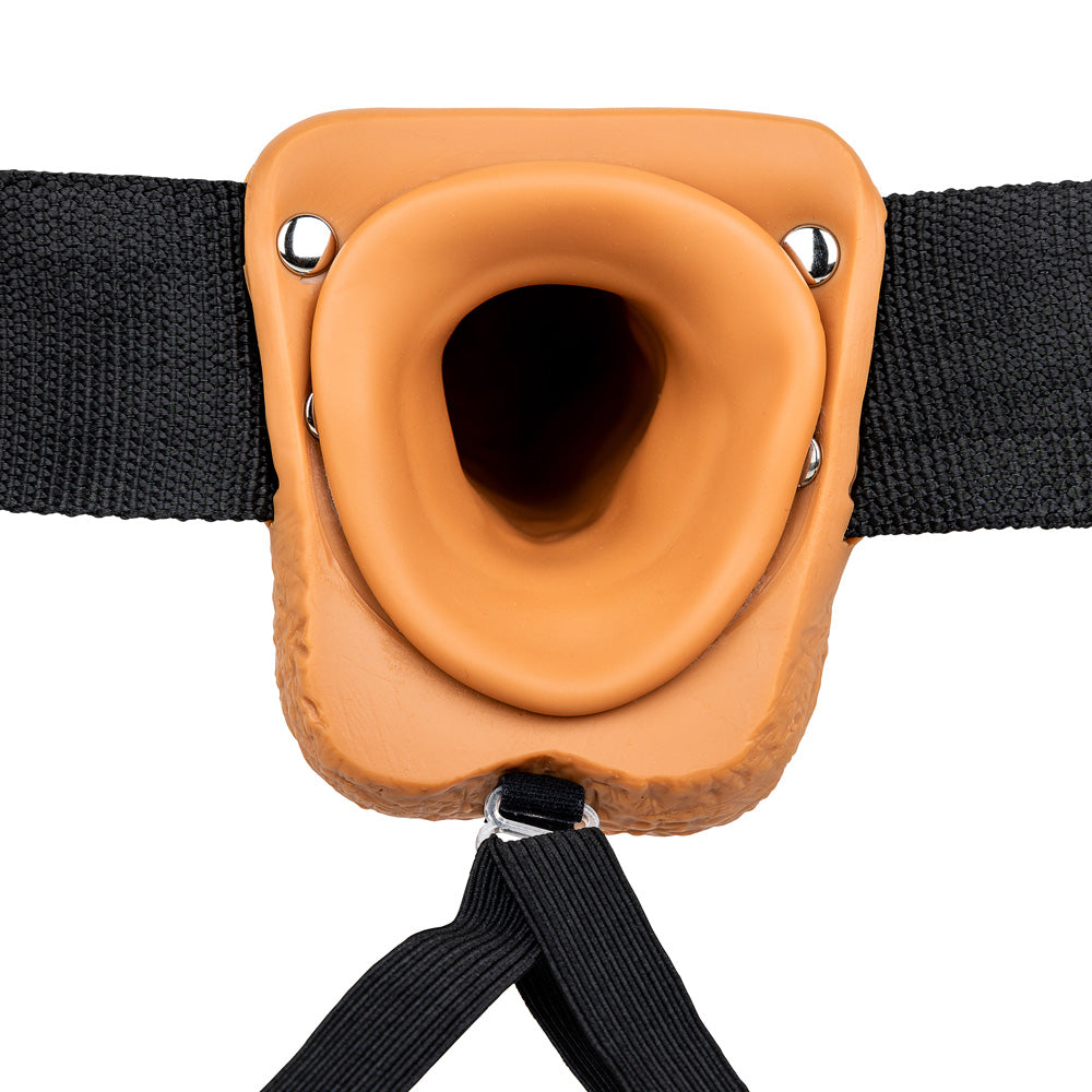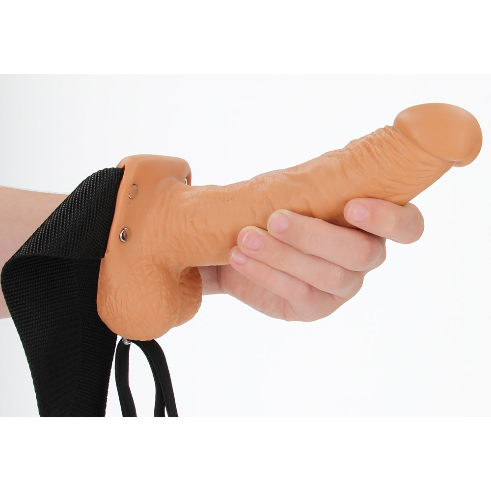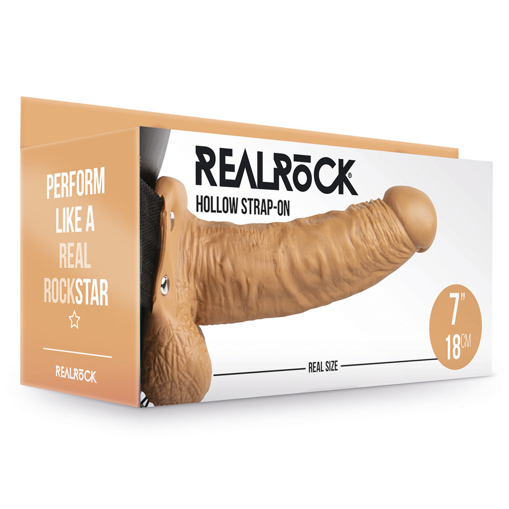 Shots Real Rock Hollow Strap On With Balls 7 Inch - Tan