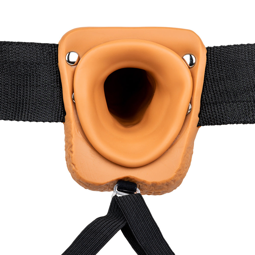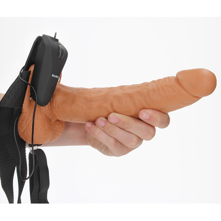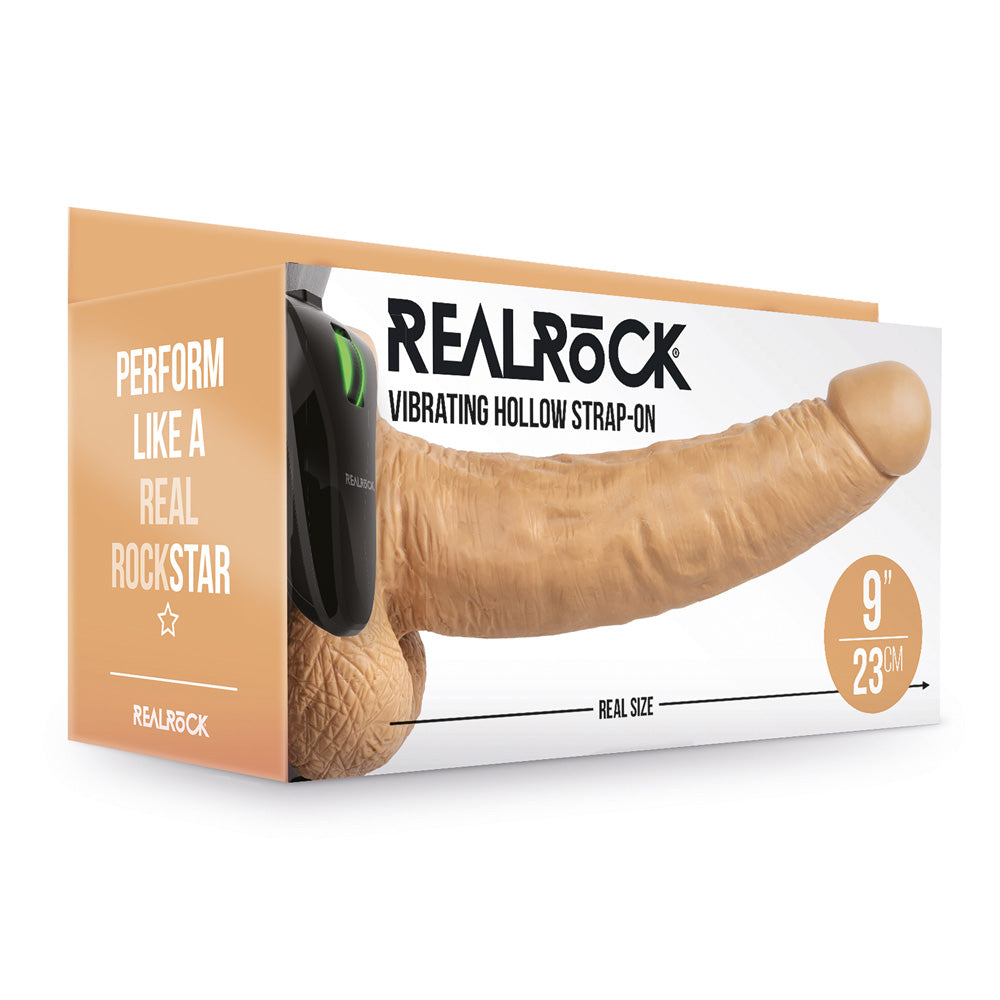 Shots Real Rock Hollow Strap On With Balls Vibrating 9 Inch - Tan