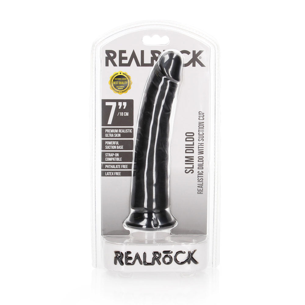 Shots Real Rock Realistic Slim Dildo 7 Inch - Black