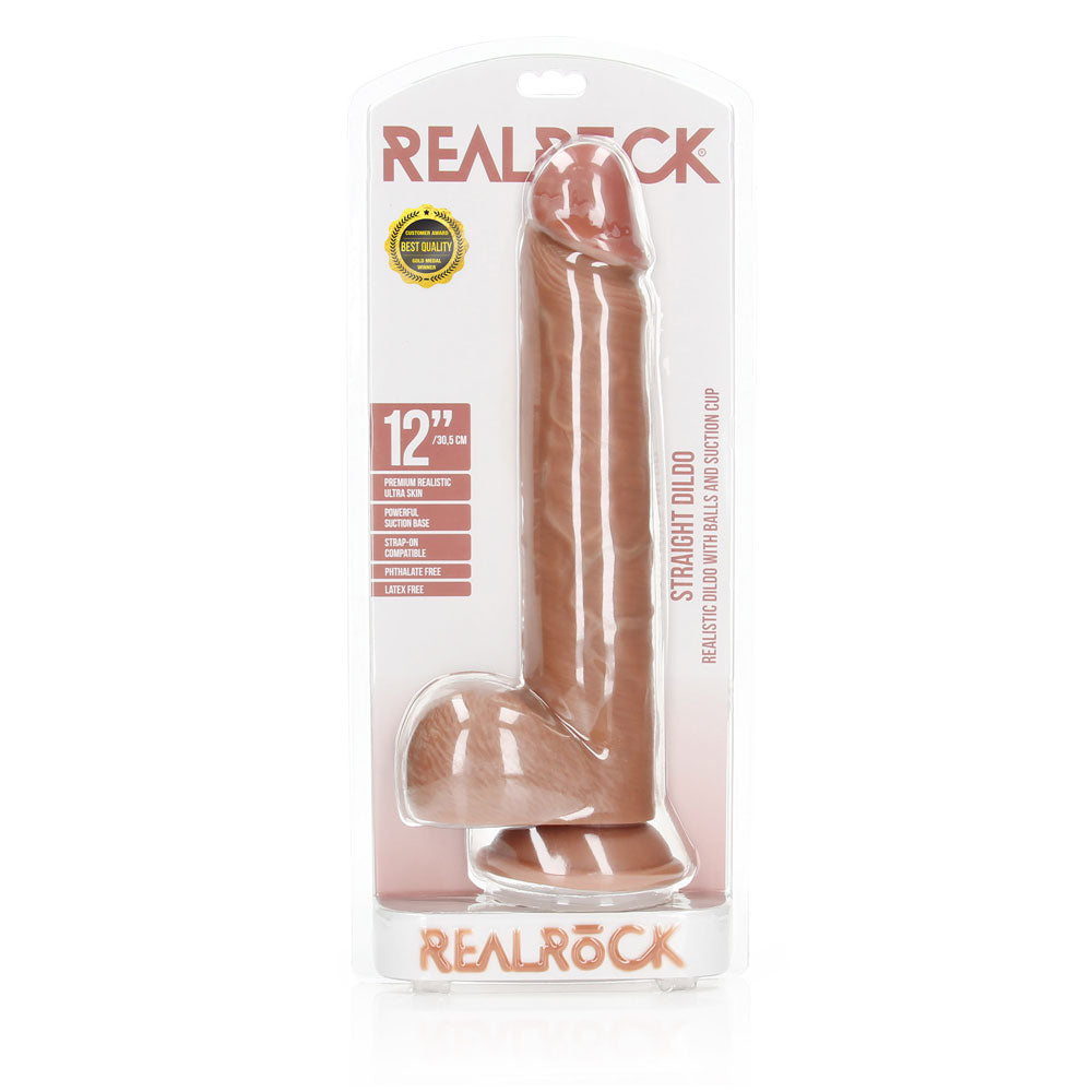 Shots Real Rock Realistic Straight Dildo With Balls 12 Inch - Tan