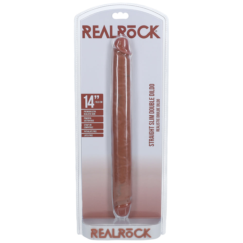 Shots Real Rock Straight Slim 14 Inch Double Dildo - Tan