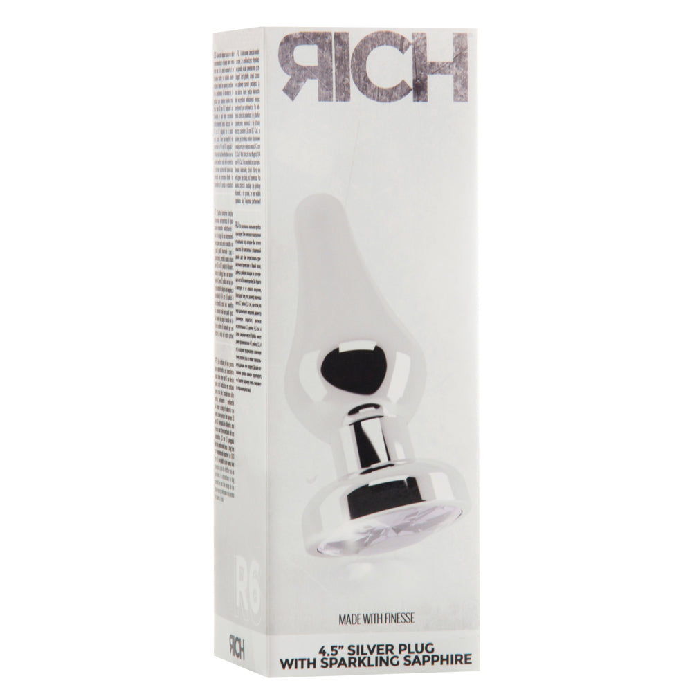 Shots Rich R6 Metal Butt Plug 4.5 Inch Sparkling Sapphire - Silver