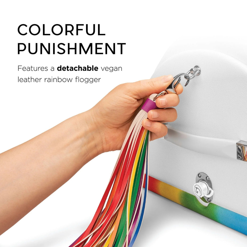 The Unicorn is the limited-edition fantasy version of the Classic Cowgirl. Both deliver extreme power, but the Unicorn stands out with its rainbow details, themed flogger, and fantasy attachments.