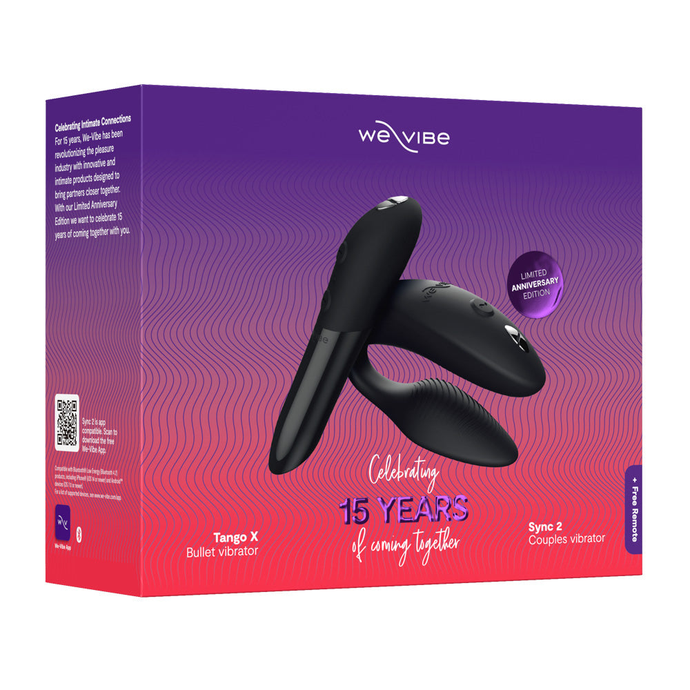 Introducing the We Vibe 15 Year Anniversary Collection - the ultimate pleasure experience that celebrates 15 years of innovation. With our limited-edition set, you'll have the best of both worlds as it includes our two best-sellers: the Sync 2 and Tango X.
