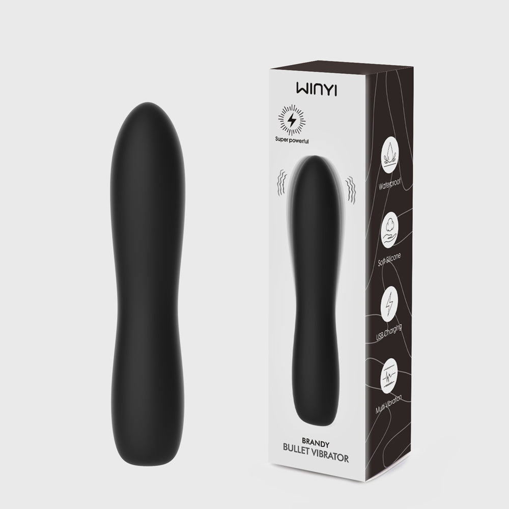 Introducing the Winyi Brandy Vibrator in sleek black, a must-have addition to your pleasure arsenal! This powerful bullet vibrator is made from premium silicone and ABS materials, ensuring a luxurious and silky-smooth feel against your skin. Measuring 138mm in length and 29mm in width, this compact vibrator is perfect for discreet pleasure at home or on the go.