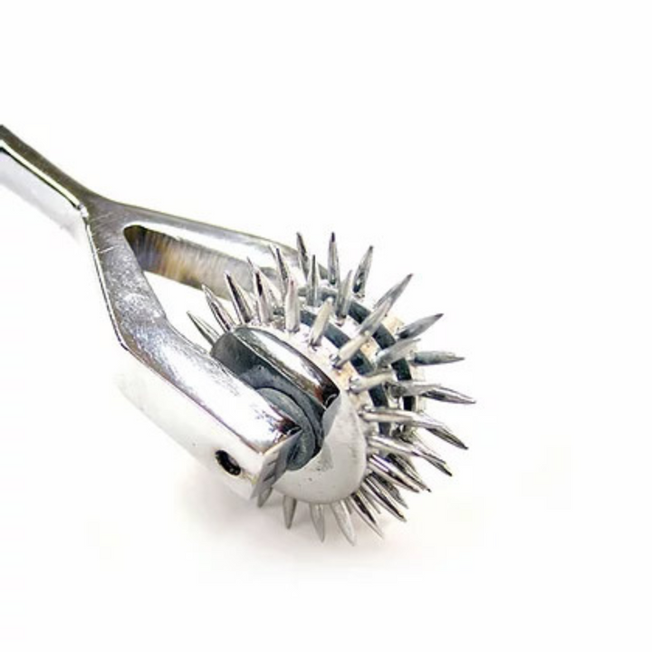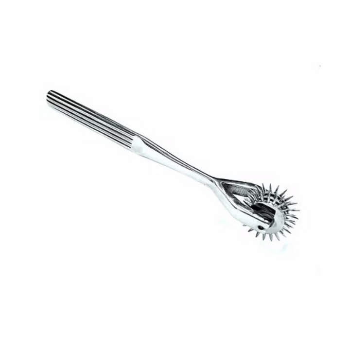 Double the pleasure, double the fun with the Pinwheel's two spinning heads! Each head, adorned with delicately sharp pins, twirls around, creating a wave of sensation that can be titillatingly tender or provocatively prickly. These twin spinners work in tandem, transforming the subtlest of touches into a crescendo of pleasure. Crafted from high-grade stainless steel, the X-Cite Pleasure & Pain Pinwheel - 3 is the epitome of durability, hygiene, and sleek aesthetics. It's easy to clean, ensuring each encounter is as safe as it is thrilling. Plus, the lustrous sheen adds that extra touch of seduction.