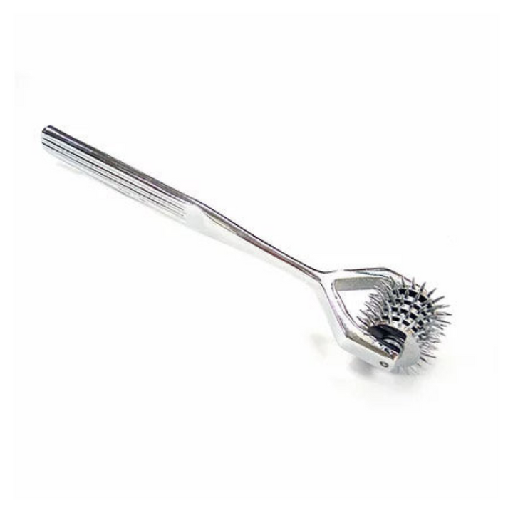 Why settle for one when you can have five? Yes, the X-Cite Pleasure & Pain Pinwheel - 5 boasts five spinning heads! Each head, bedecked with finely pointed pins, dances across your skin, creating a tantalizing cascade of sensations ranging from gentle tickles to exhilarating prickles. The five pinwheel heads enhance the sensory play, multiplying the titillation and adding an enticing unpredictability to your pleasure quest.